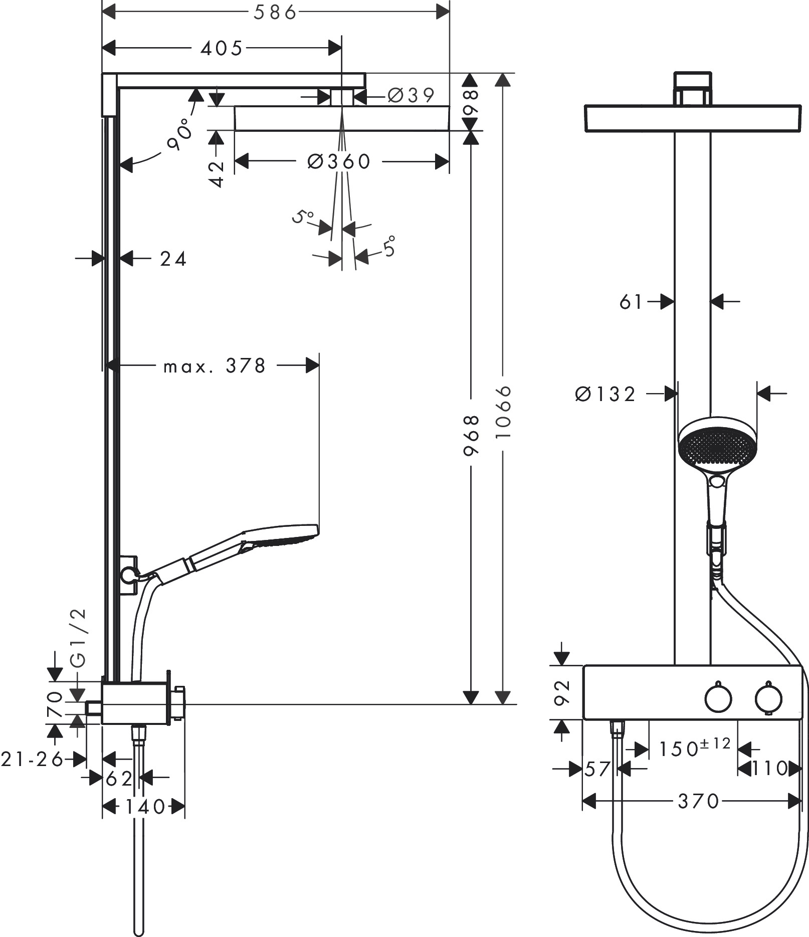 Hansgrohe Rainfinity showerpipe 360 1jet met showertablet 350 chroom