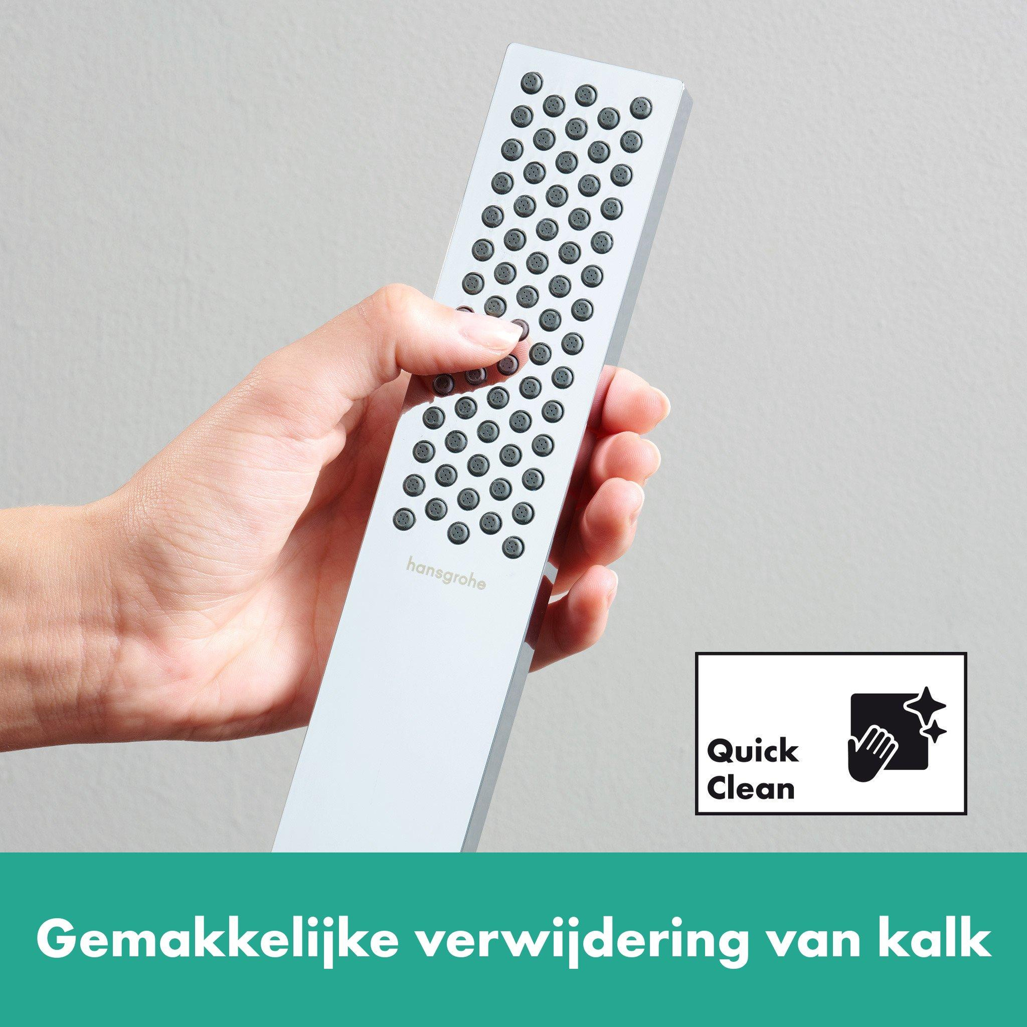 De Pulsify E 100 doucheset (1 straalsoort) met glijstang 0,65 m van hansgrohe zorgt duurzaam voor verkwikkende verfrissing tijdens het douchen. Het unieke straalsoort PowderRain van hansgrohe omhult je lichaam met een cocon van de fijnste waterdruppels en verfrist - of het nu 's ochtends is voor een nieuwe energieboost of tijdens een ontspannende douche na een drukke dag. Het opvallend minimalistische design van de douchekop trekt de aandacht en is een logische keuze voor een persoonlijk badkamerdesign. Deze producten zijn verkrijgbaar in verschillende kleurafwerkingen. Het is verkrijgbaar in gepolijst chroom, fris wit en gewaagd zwart.