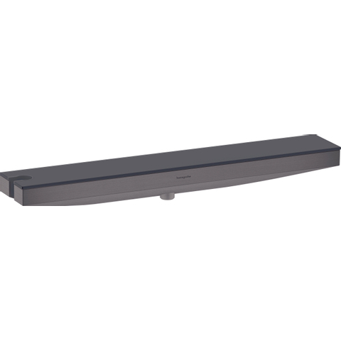 Het 50 cm brede planchet met ondoorzichtig veiligheidsglas biedt veel ruimte voor verzorgingsproducten. Binnenin schuilt trouwens een praktisch geheim: als porter heeft hij tevens een ingebouwde wateraansluiting voor de doucheslang. Er is aan de linkerkant bovendien een houder voor een douchekop ingebouwd, zodat de handdouche altijd binnen handbereik is. Alle doucheslangen met een conische moer passen in de houder. Een slang in Brushed Black Chrome wordt aanbevolen voor een harmonieuze totaalindruk. Dankzij de gladde finish kan de planchet makkelijk worden gereinigd, waardoor hij langer mooi blijft.