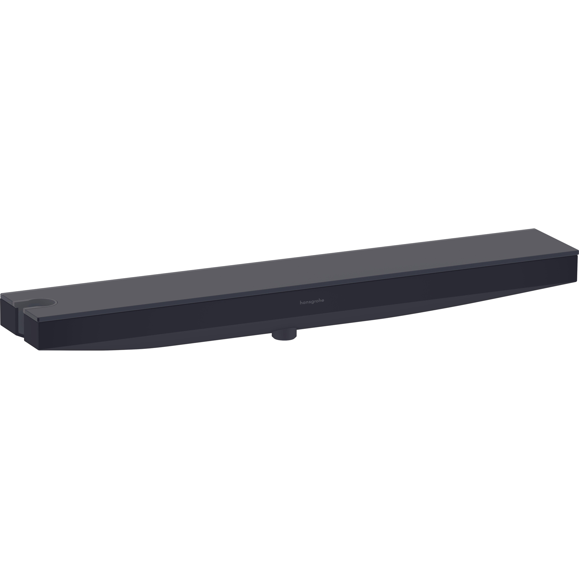 Het 50 cm brede planchet met ondoorzichtig veiligheidsglas biedt veel ruimte voor verzorgingsproducten. Binnenin schuilt trouwens een praktisch geheim: als porter heeft hij tevens een ingebouwde wateraansluiting voor de doucheslang. Er is aan de linkerkant bovendien een houder voor een douchekop ingebouwd, zodat de handdouche altijd binnen handbereik is. Alle doucheslangen met een conische moer passen in de houder. Een slang in mat zwart wordt aanbevolen voor een harmonieuze totaalindruk. Dankzij de gladde finish kan de planchet makkelijk worden gereinigd, waardoor hij langer mooi blijft.