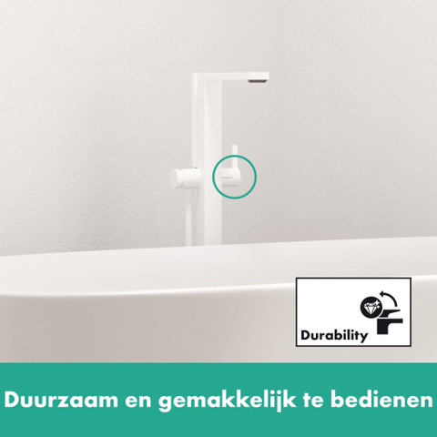 Geef water een speciale vorm met de vloergemonteerde Tecturis E badmengkraan van hansgrohe. Tecturis E maakt indruk met een puristisch design met heldere lijnen en geometrische vormen. De kraan combineert een sterke uitstraling met maximaal comfort. Dit verandert het gebruik van water elke dag weer in een nieuwe mooieervaring.