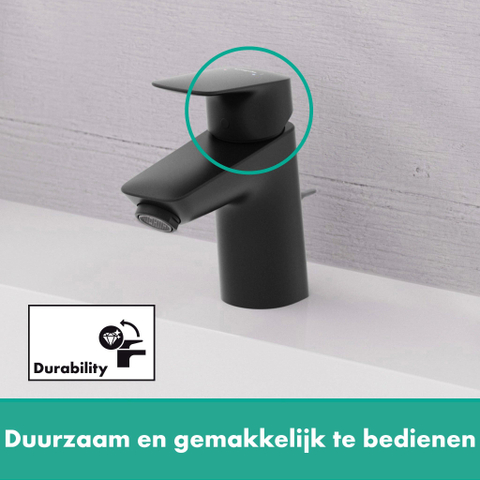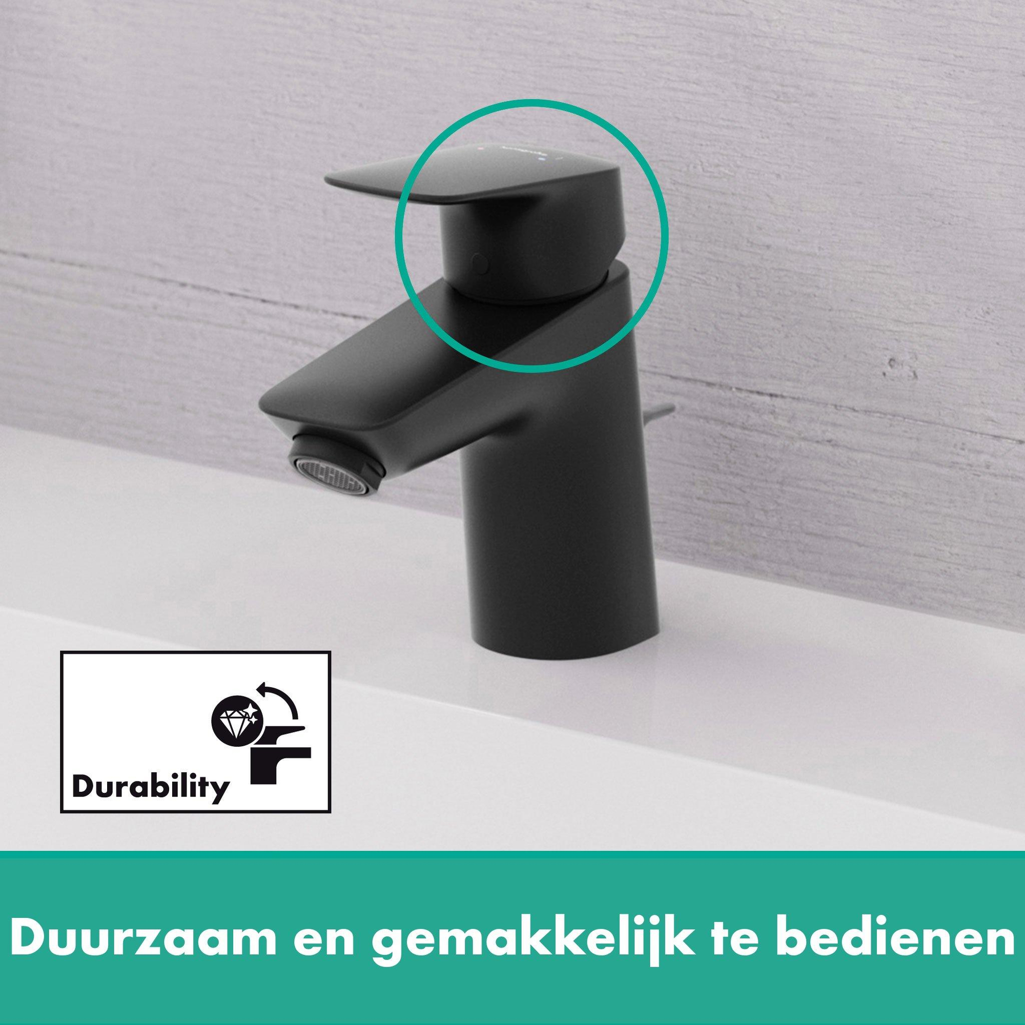 Hansgrohe Logis wastafelkraan 70 - met metalen trekwaste - mat zwart