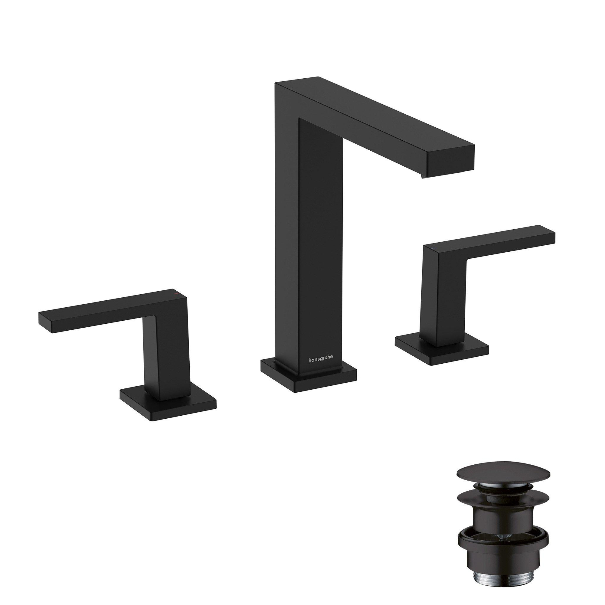 Maakt van water een belevenis: Tecturis E 150 3-gats wastafelmengkraan in mat zwart met push-open afvoerplug