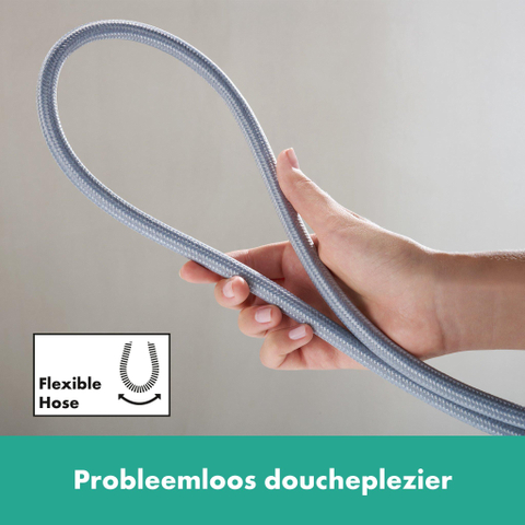 Geniet van wellnessmomenten: de Rainfinity 130 doucheset met S Puro glijstang en textiel doucheslang van hansgrohe maakt het mogelijk. In tijdloos stijlvol chroom en voorzien van talrijke comfortfuncties nodigt de set uit tot een ontspannende douche. De Rainfinity douchekop met extra grote straalschijf (130 mm) is een van de beste die hansgrohe te bieden heeft. De innovatieve doucheslang maakt gebruik van beproefde materialen uit de zeilsport en is merkbaar lichter dan een standaardslang. Het gebruikte garen is gemaakt van gerecycled PET en is bijzonder duurzaam, waterdicht en vuilafstotend.