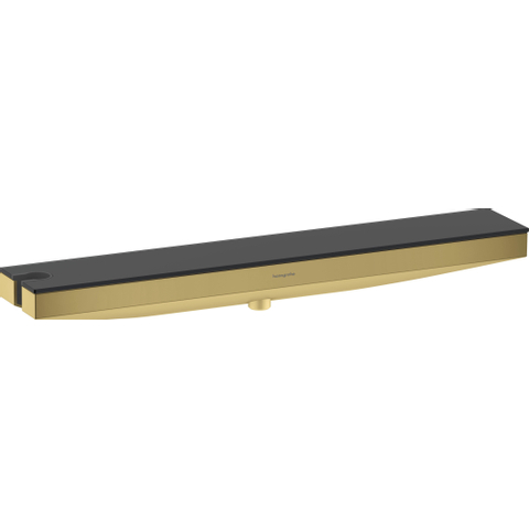 Het 50 cm brede planchet met geglazuurd veiligheidsglas biedt veel ruimte voor verzorgingsproducten. Binnenin schuilt trouwens een praktisch geheim: als porter heeft hij tevens een ingebouwde wateraansluiting voor de doucheslang. Er is aan de linkerkant bovendien een houder voor een douchekop ingebouwd, zodat de handdouche altijd binnen handbereik is. Alle doucheslangen met een conische moer passen in de houder. Een slang in goudfinish wordt aanbevolen voor een harmonieuze totaalindruk. Dankzij de gladde finish kan de planchet makkelijk worden gereinigd, waardoor hij langer mooi blijft.