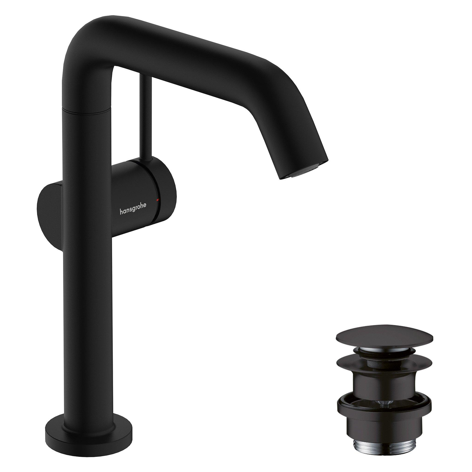 Hansgrohe Tecturis S Wastafelmengkraan - push to open waste - 15.4cm draaibare uitloop - zwart mat