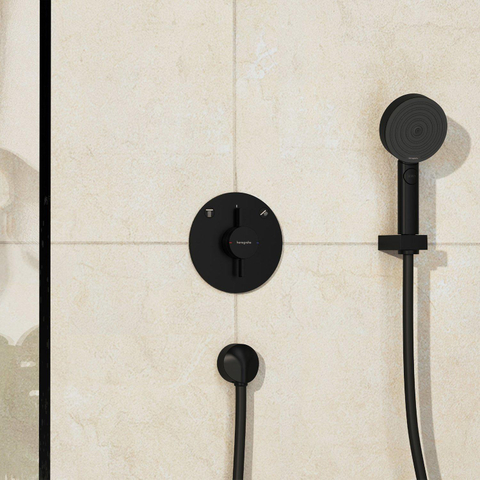 De hansgrohe DuoTurn S inbouwmengkraan breidt de badkamer in stijl uit. Het ultraplatte ontwerp biedt dankzij de minimale montagehoogte meer ruimte in de douche of het bad. En het beste van alles: ook als de hendel open is, ligt de kraan nog steeds plat tegen de muur - de hendel steekt niet uit en kan niet onbedoeld worden bewogen. Geniet van meer douchecomfort.