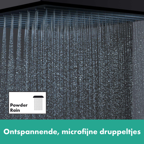 Duurzame energieboost: waterbesparende Pulsify E douchekop in mat zwart met PowderRain voor wand- of plafondbevestiging