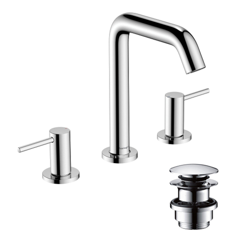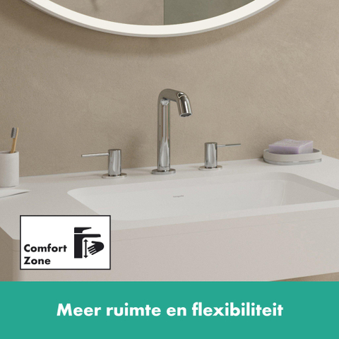 Maakt van water een belevenis: Tecturis S 150 3-gats wastafelmengkraan in chroom met push-open afvoerplug