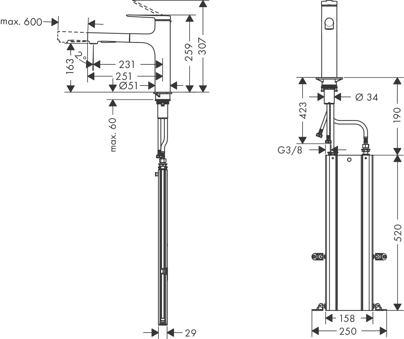 Dankzij de afzonderlijke slangbox (sBox) kan de metalen uitloop tot 76 cm worden uitgetrokken. Het duurzame keramisch mengsysteem regelt op betrouwbare wijze de hoeveelheid en de temperatuur van het water. Net als de kraan zelf is hij gemaakt door hansgrohe in Duitsland.