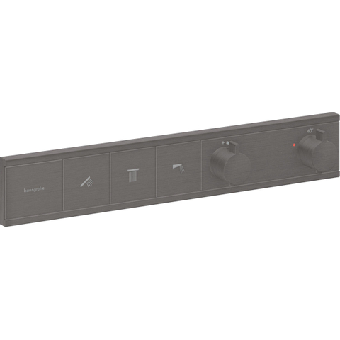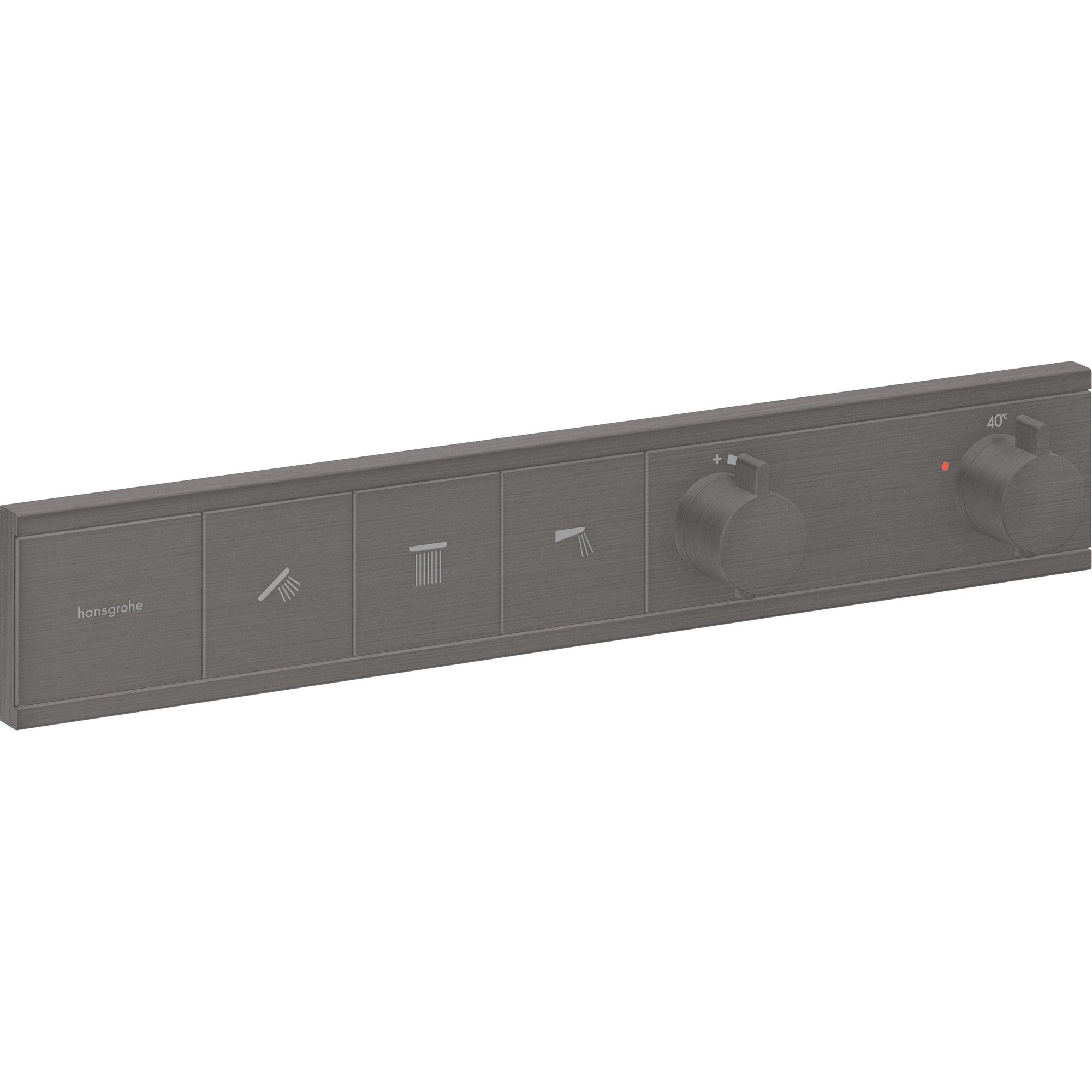De RainSelect-douchethermostaat voor drie functies (inbouwsysteem) maakt indruk met zijn finish in Brushed Black Chrome en talrijke comfortfuncties. De expressieve tint komt precies overeen met de identieke FinishPlus-finish van andere producten van hansgrohe. Samen met de bijpassende badkamerkranen, accessoires of douches, met name die uit de Rainfinity-serie, wordt je droombadkamer werkelijkheid.