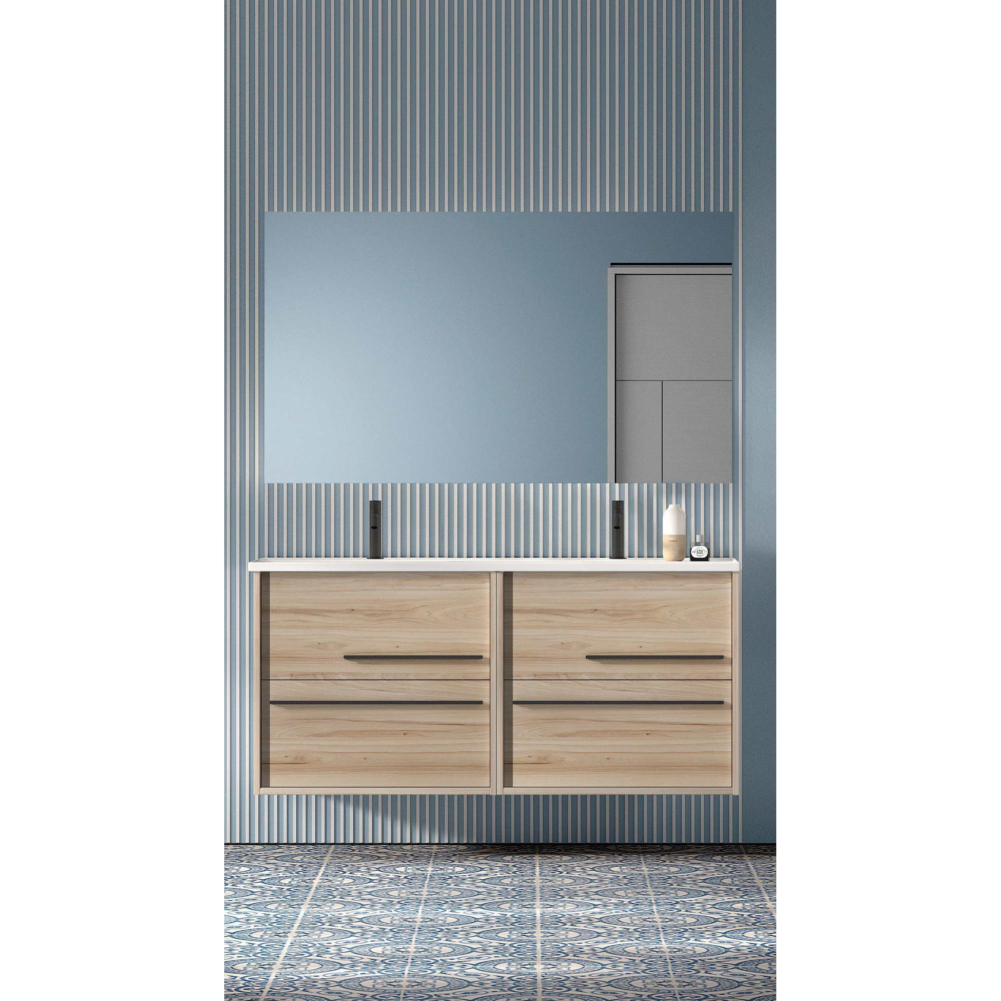 Naast zijn esthetische waarde is de Adema Prime Essential Badkamermeubelset ook zeer praktisch in gebruik. Met 4 ruime lades biedt het voldoende opbergruimte voor al je badkamerbenodigdheden, van handdoeken tot toiletartikelen. De 2 kraangaten maken het gemakkelijk om twee wastafels te installeren, waardoor het meubel perfect is voor gedeelde badkamers of drukke ochtendroutines. Deze set combineert stijl met functionaliteit voor een complete badkamerervaring.