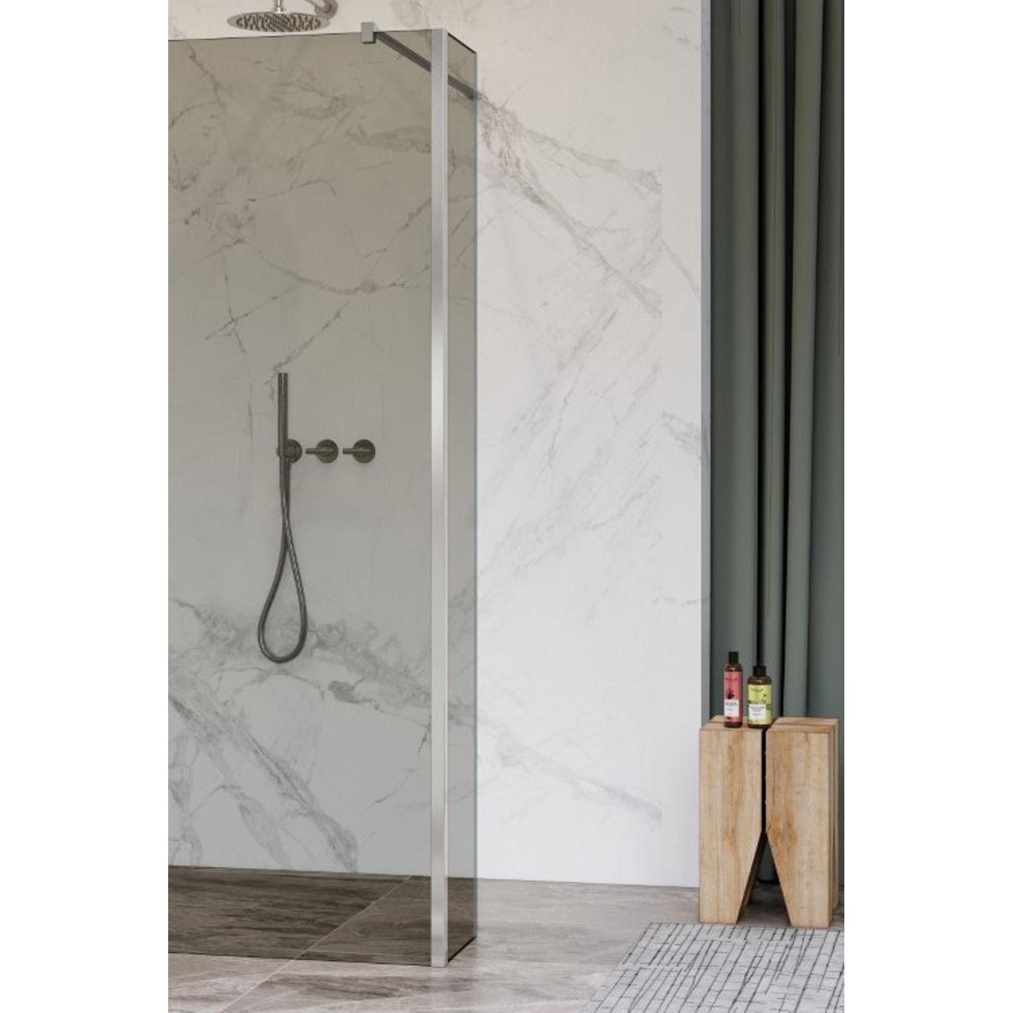 De Fortifura Galeria zijwand straalt pure schoonheid uit. Het rookglas creëert een gevoel van luxe en privacy, terwijl het geborsteld RVS een vleugje moderniteit toevoegt. De combinatie van materialen en afmetingen zorgt voor een elegante uitstraling die moeiteloos past bij verschillende badkamerstijlen. Of je nu een minimalistische look wilt creëren of juist een meer uitgesproken design wilt, deze zijwand voegt een vleugje schoonheid toe aan elke ruimte.