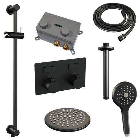 Zwart mat - Diameter hoofddouche: 30cm - Handdouche: Staaf - Douchearm montage: Plafondarm - Gladde knoppen (€ 1.488,20 )