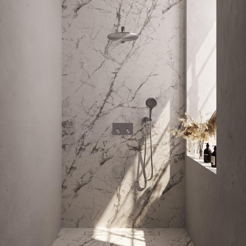BRAUER Brushed Carving Thermostatische Regendouche inbouw - drukknoppen - SET 56 - 30cm hoofddouche - rechte muurarm - 3 standen handdouche - doucheslang - wandaansluitbocht - RVS geborsteld PVD SW925457