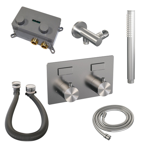 BRAUER Brushed Edition thermostatische inbouw badkraan - drukknoppen SET 03 - badvulcombinatie - staaf handdouche - doucheslang - wandaansluitbocht - RVS geborsteld PVD