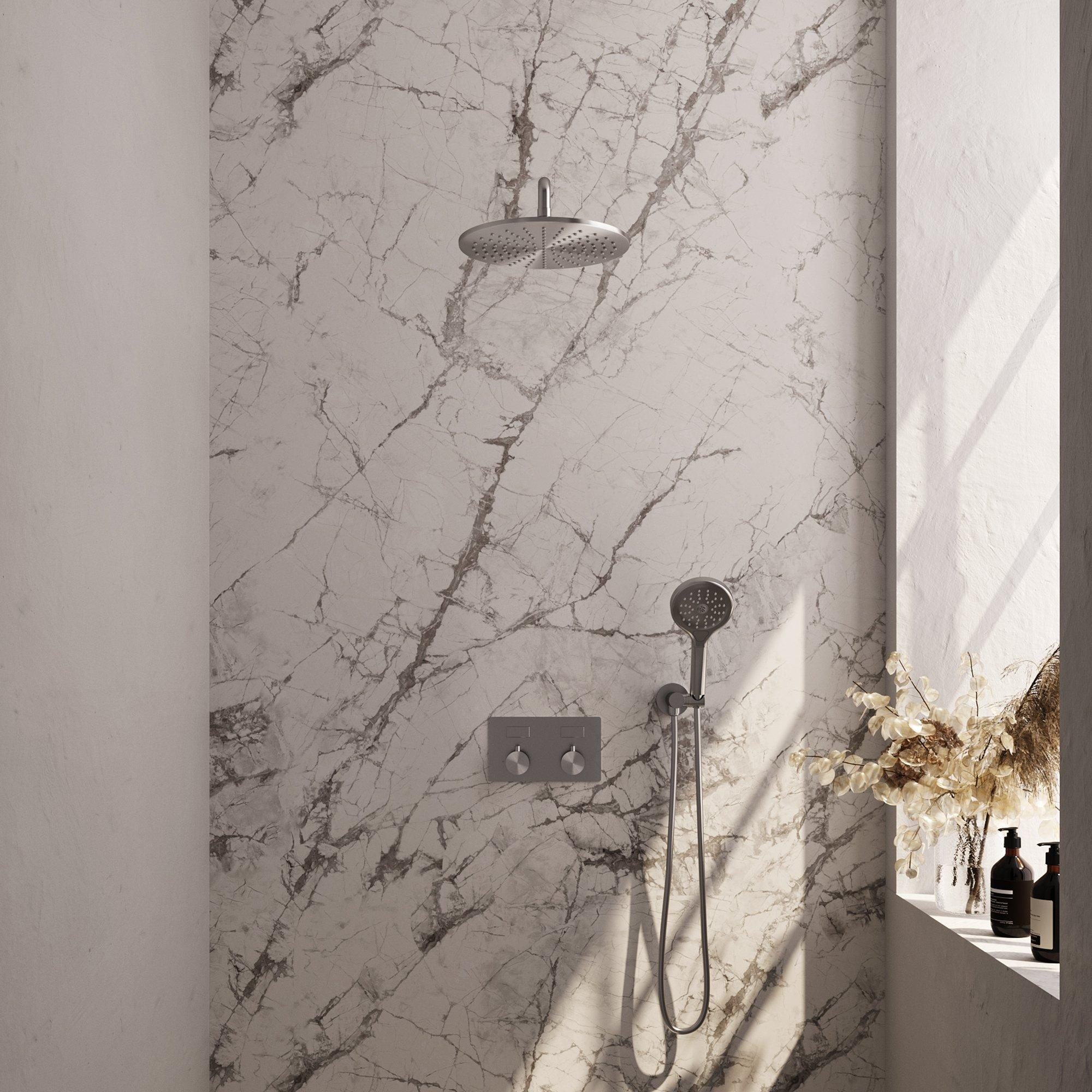 BRAUER Brushed Edition Thermostatische Regendouche inbouw - drukknoppen - SET 58 - 30cm hoofddouche - gebogen muurarm - 3 standen handdouche - doucheslang - wandaansluitbocht - RVS geborsteld PVD