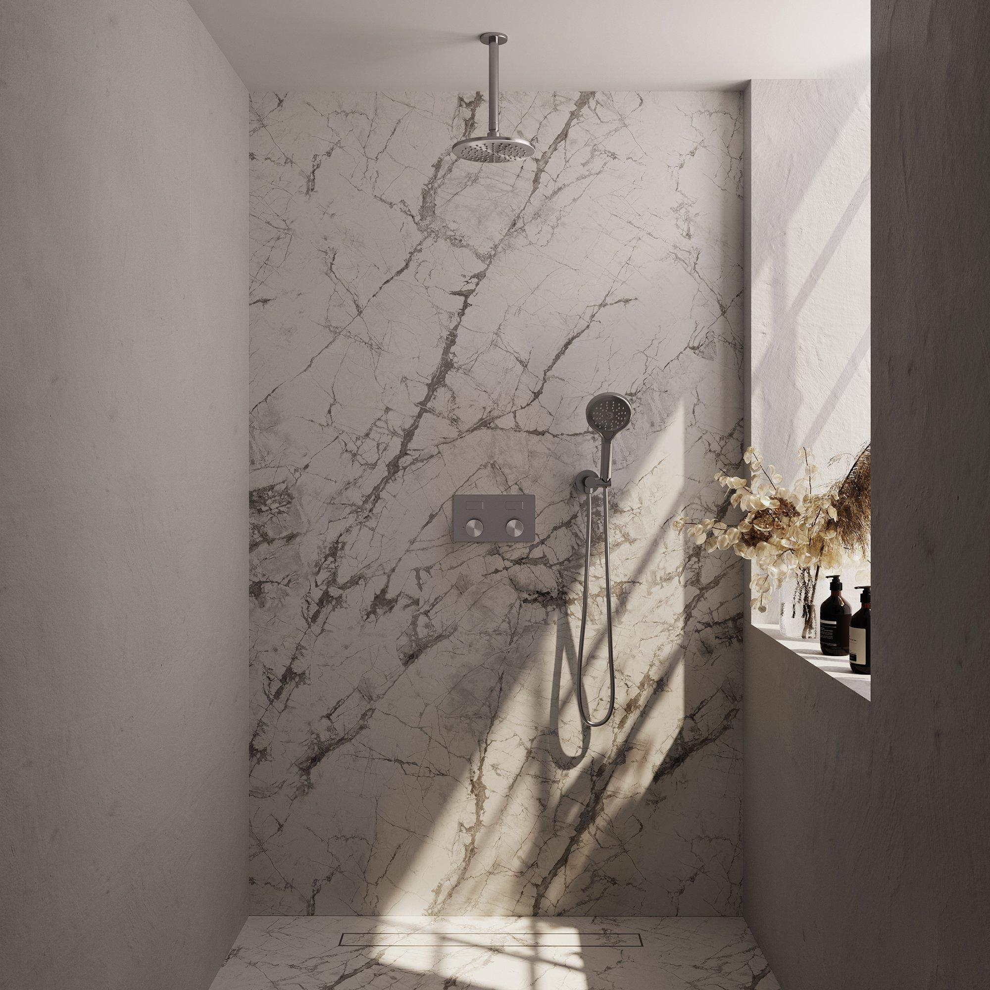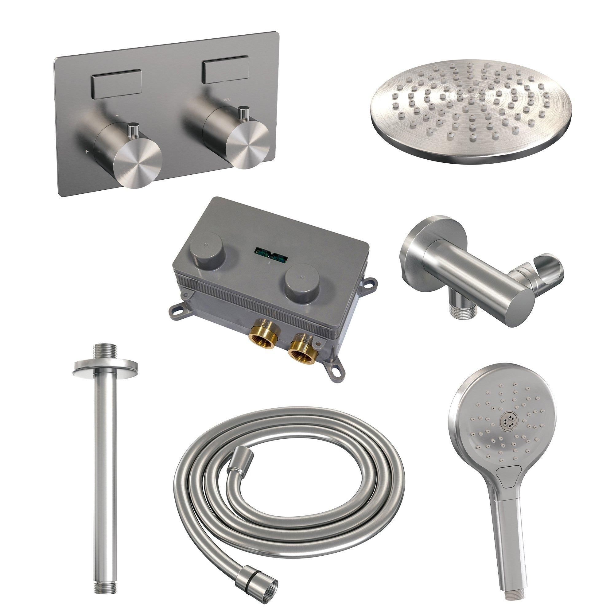BRAUER Brushed Edition Thermostatische Regendouche inbouw - drukknoppen - SET 59 - 20cm hoofddouche - plafondarm - 3 standen handdouche - doucheslang - wandaansluitbocht - RVS geborsteld PVD SW925491