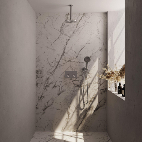 BRAUER Brushed Edition Thermostatische Regendouche inbouw - drukknoppen - SET 59 - 20cm hoofddouche - plafondarm - 3 standen handdouche - doucheslang - wandaansluitbocht - RVS geborsteld PVD
