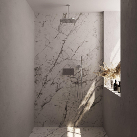 BRAUER Chrome Carving Thermostatische Regendouche inbouw - drukknoppen - SET 54 - 30cm hoofddouche - plafondarm - staaf handdouche - doucheslang - wandaansluitbocht - chroom SW925505