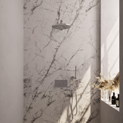 Chroom - Diameter hoofddouche: 30cm - Handdouche: Staaf - Douchearm montage: Wandarm recht - Carving Knoppen (€ 1.245,90 )