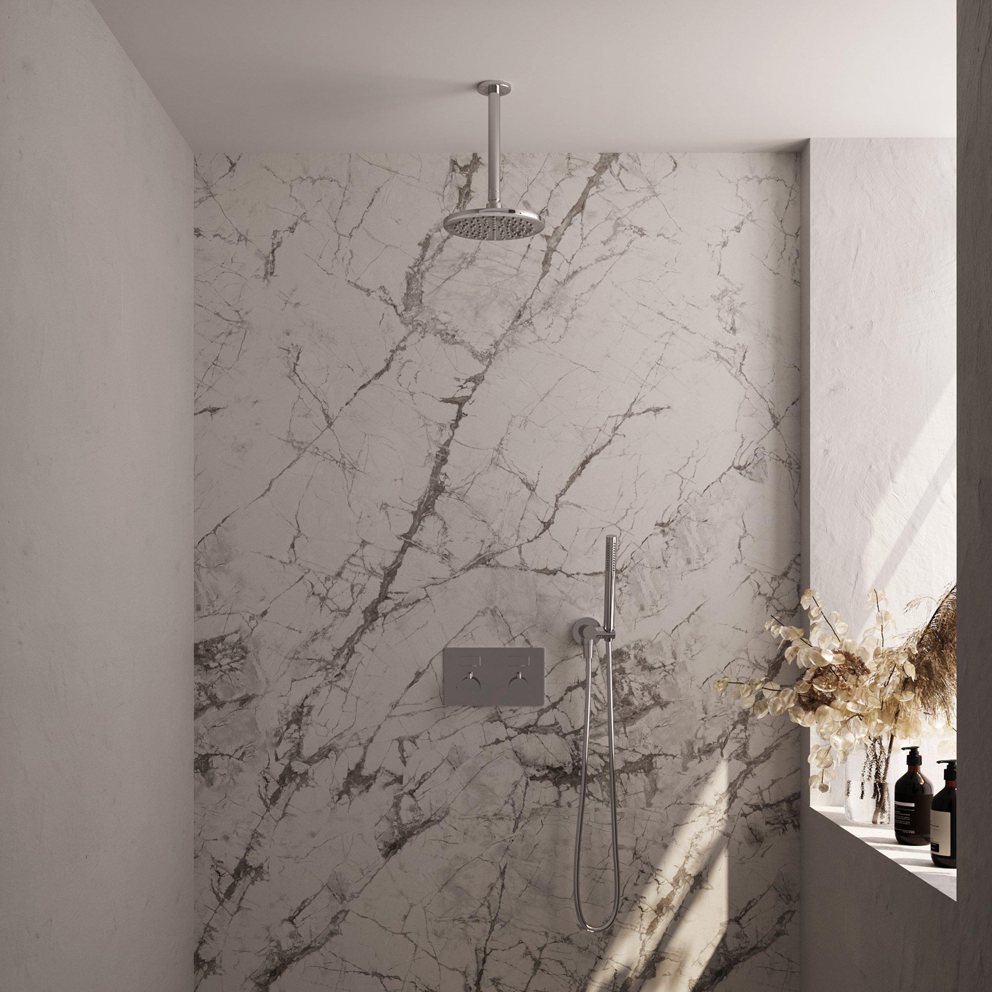 BRAUER Chrome Edition Thermostatische Regendouche inbouw - drukknoppen - SET 53 - 20cm hoofddouche - plafondarm - staaf handdouche - doucheslang - wandaansluitbocht - chroom