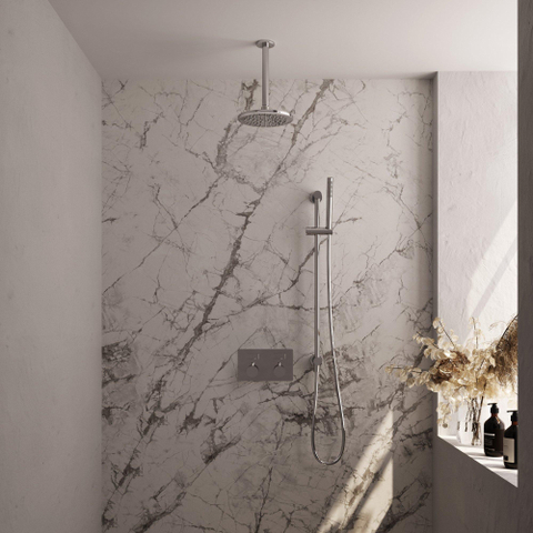 BRAUER Chrome Edition Thermostatische Regendouche inbouw - drukknoppen - SET 65 - 20cm hoofddouche - plafondarm - staaf handdouche - doucheslang - geïntegreerde glijstang - chroom SW925548