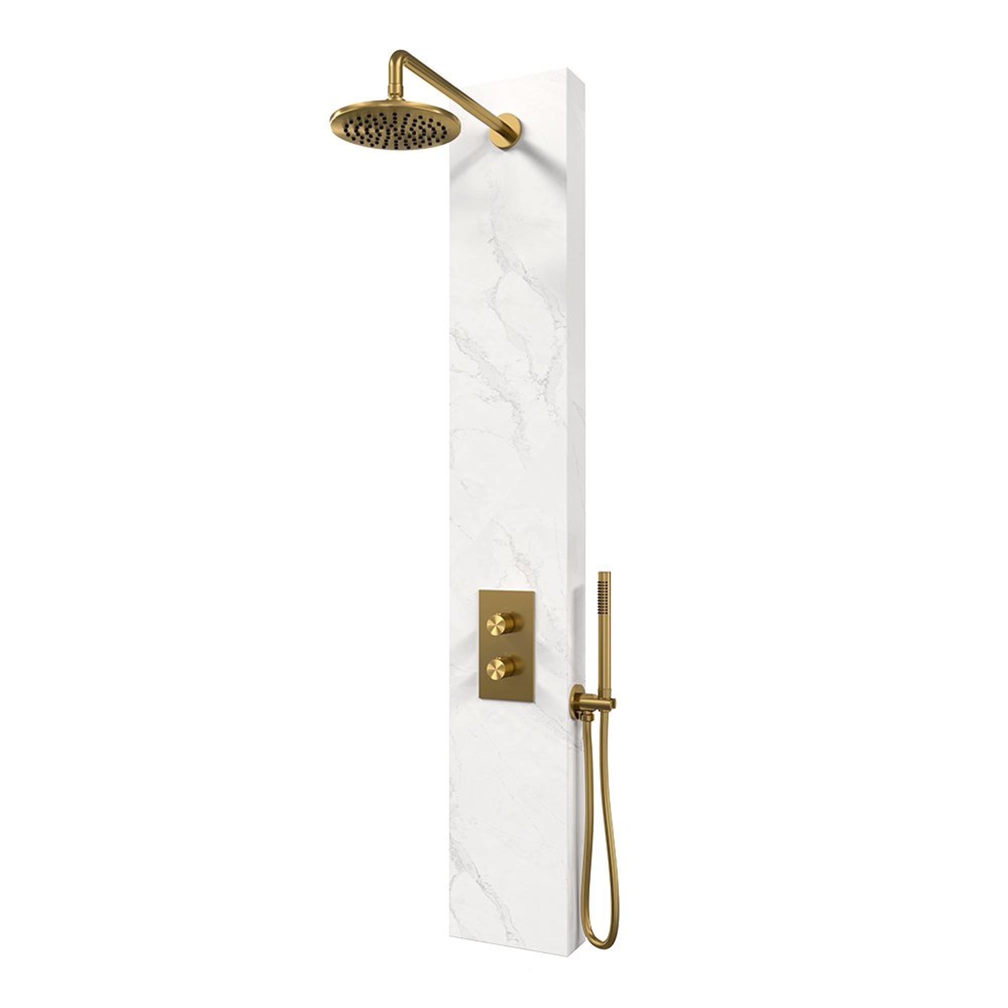 BRAUER Gold Edition thermostatisch douchepaneel - 2 functies - calacatta gold SET 01 - 20cm hoofddouche - gebogen muurarm - staaf handdouche - wandaansluitbocht - doucheslang - goud geborsteld PVD