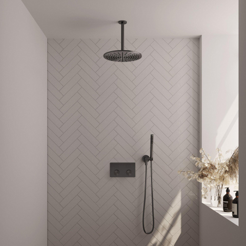 De BRAUER gunmetal Carving Thermostatische Regendouche inbouw is een prachtig ontworpen doucheset die een vleugje luxe en elegantie toevoegt aan elke badkamer. Met zijn gunmetal geborsteld PVD afwerking straalt deze regendouche klasse uit en creëert een spa-achtige sfeer in jouw badkamer. De set bevat een 30cm hoofddouche, een plafondarm, een staaf handdouche, een doucheslang en een wandaansluitbocht, waardoor je kunt genieten van ultiem comfort en functionaliteit. De BRAUER gunmetal Carving Thermostatische Regendouche inbouw is de perfecte keuze voor wie op zoek is naar een stijlvolle upgrade voor hun doucheruimte.