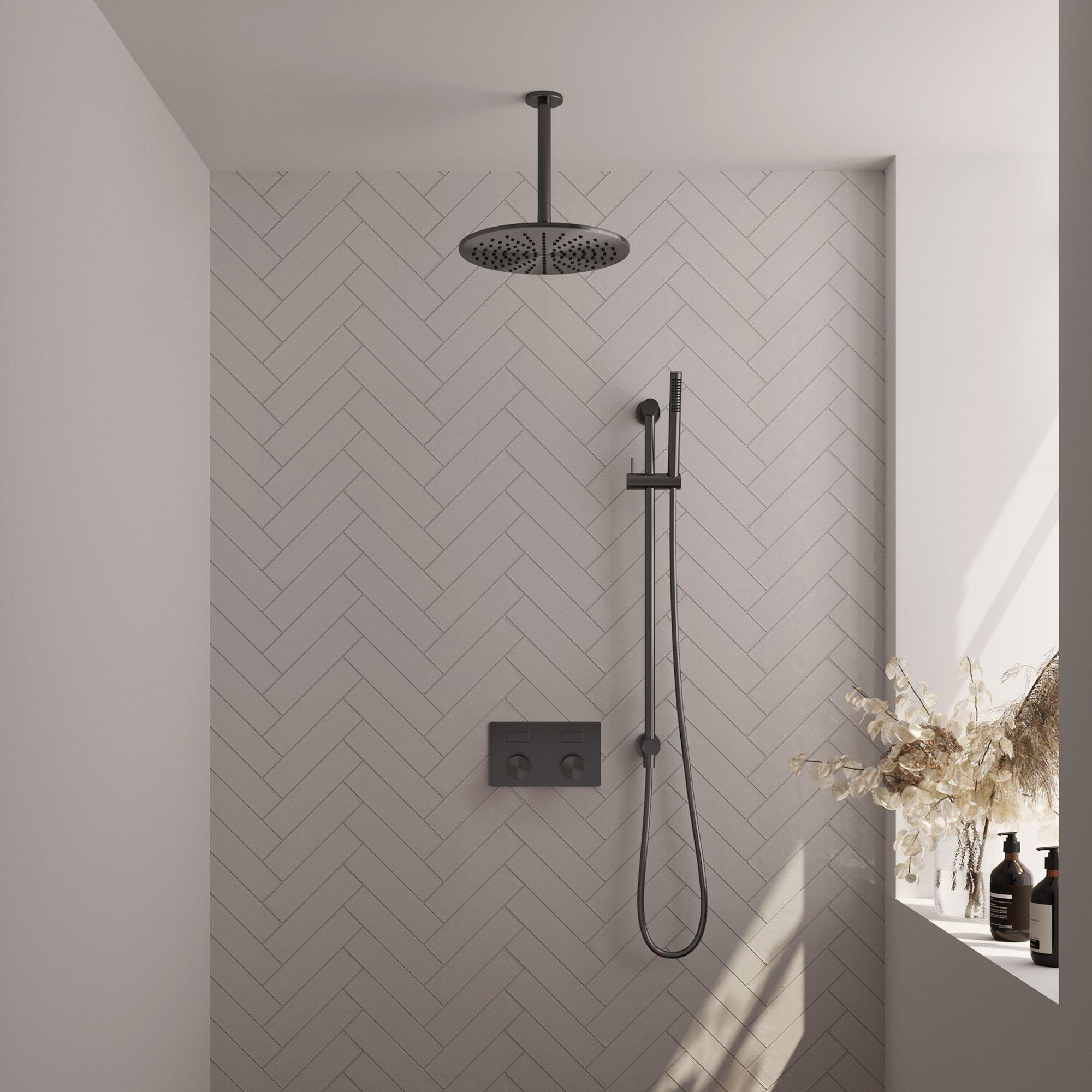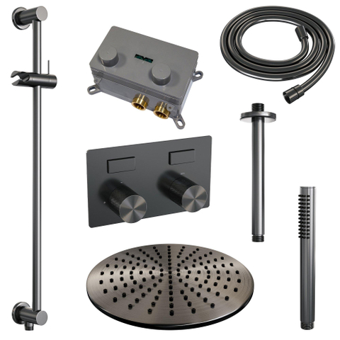 Gunmetal Geborsteld (Antraciet) - Diameter hoofddouche: 30cm - Handdouche: Staaf - Douchearm montage: Plafondarm - Gladde knoppen (€ 1.687,10 )