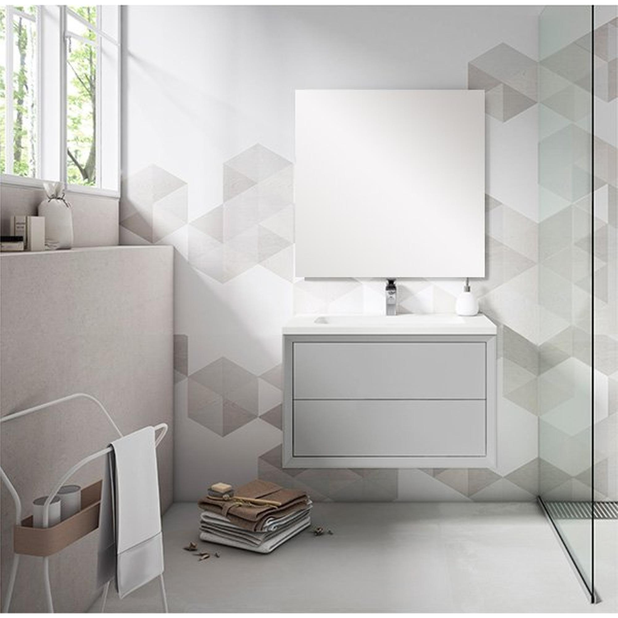 Adema Prime Core Badkamermeubelset - 80x50x45cm - 1 rechthoekige keramische wasbak wit - 1 kraangat - 2 lades - rechthoekige spiegel - mat greige (grijs)