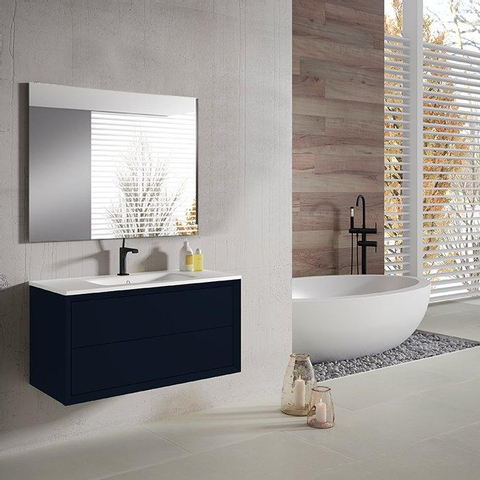 Adema Prime Core Badkamermeubelset - 100x50x45cm - 1 rechthoekige keramische wasbak wit - 1 kraangat - 2 lades - rechthoekige spiegel - mat marine blauw