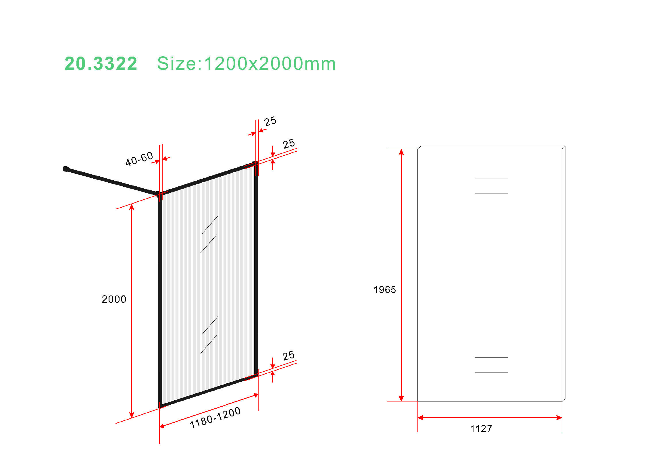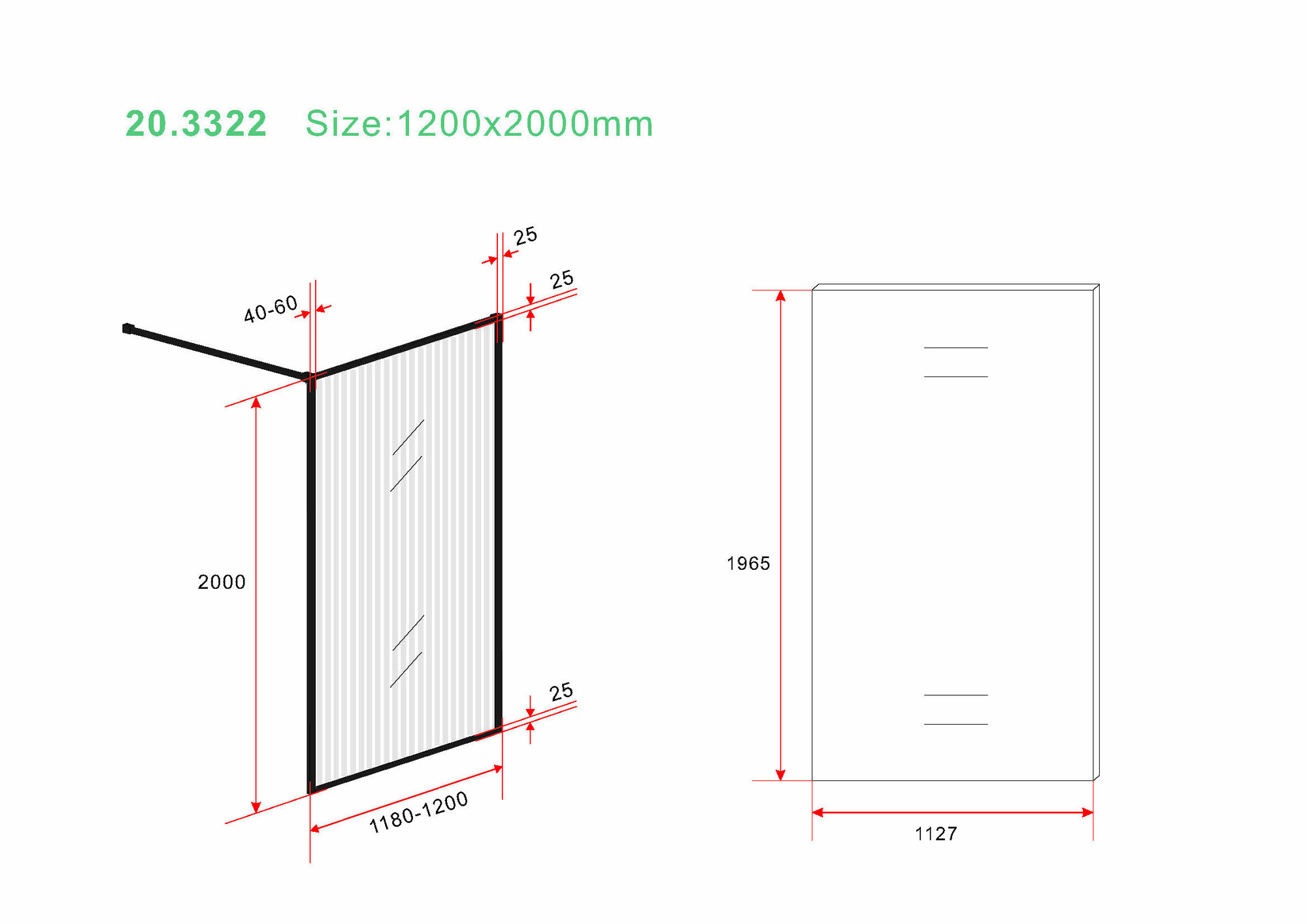 Wiesbaden Square inloopdouche 1200x2000 8mm nano geribbeld helder glas/mat zwart
