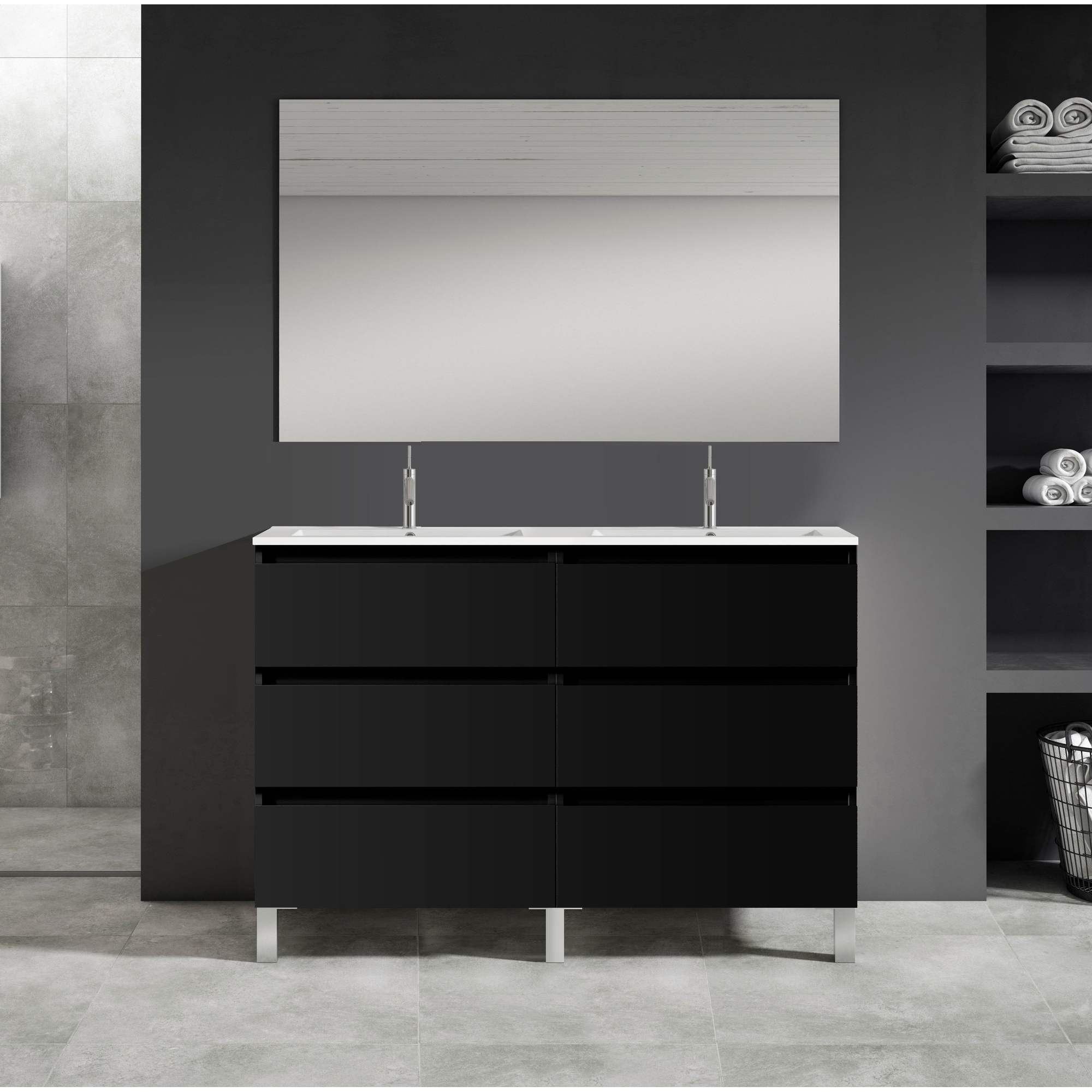 Adema Chaci PLUS Badkamermeubelset - 120x86x46cm - 2 ovale keramische wasbakken wit - 2 kraangaten - 6 lades - rechthoekige spiegel - mat zwart