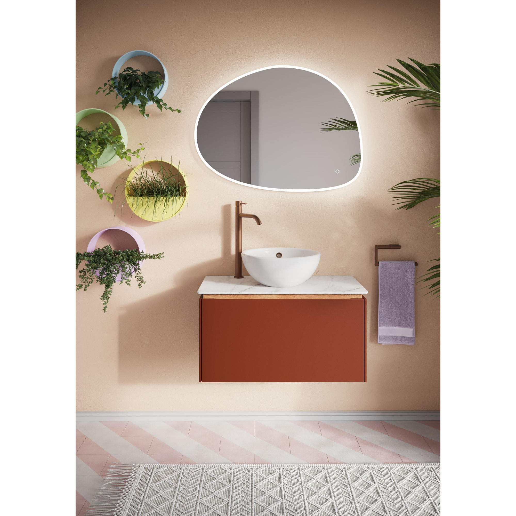 Deze wastafelkraan past perfect bij diverse badkamerstijlen, van modern tot klassiek. De geborsteld bronzen afwerking geeft een warme en uitnodigende uitstraling aan de ruimte. Of je nu een strakke en minimalistische badkamer hebt of een meer traditionele inrichting, deze kraan voegt een vleugje elegantie toe aan elke setting.