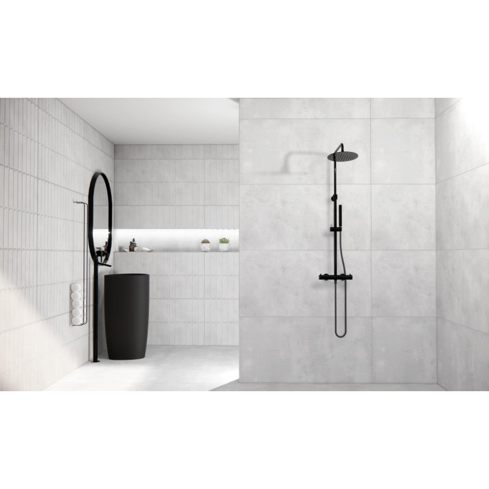 De Prissmacer Cerámica Beton Cire Bercy Wandtegel straalt schoonheid en verfijning uit. Het matte witte oppervlak geeft een gevoel van ruimte en licht, waardoor de badkamer een frisse en uitnodigende uitstraling krijgt. De zorgvuldig gekozen afmetingen zorgen voor een harmonieus geheel en laten de tegel moeiteloos opgaan in elk interieur. Deze tegel is niet alleen mooi om te zien, maar ook praktisch in onderhoud, waardoor hij perfect is voor dagelijks gebruik.