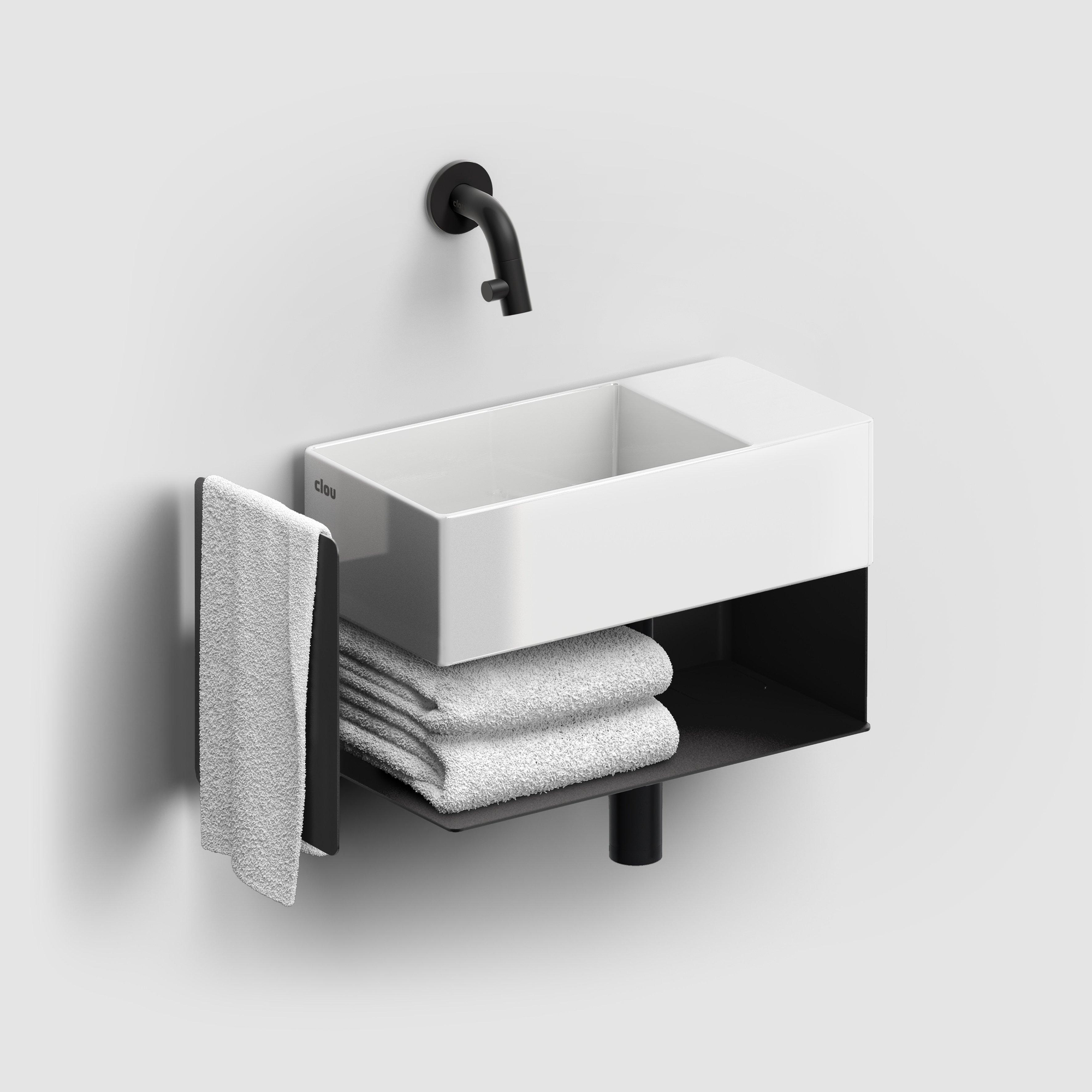 Clou New Flush Open Kast - 44x18x21.2cm - rechts - met handdoekhouder - zwart