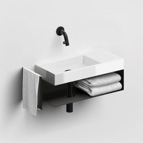 Clou Mini Wash Me Open Kast - 53x19x17.5cm - rechts - met handdoekhouder - zwart