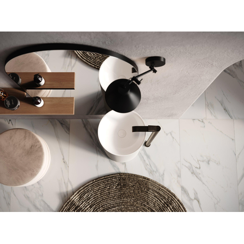 De Looox wastafelzuil is doordrenkt met een moderne esthetiek die perfect past bij eigentijdse badkamers. Het strakke en minimalistische ontwerp van de zuil zorgt voor een frisse en trendy uitstraling. De ronde vorm en vrijstaande structuur geven een gevoel van ruimte en lichtheid, waardoor de badkamer een open en uitnodigende sfeer krijgt. De mineraalmarmeren constructie in lichtgrijs mat voegt een vleugje elegantie toe aan de ruimte, terwijl het duurzame materiaal zorgt voor langdurige schoonheid.