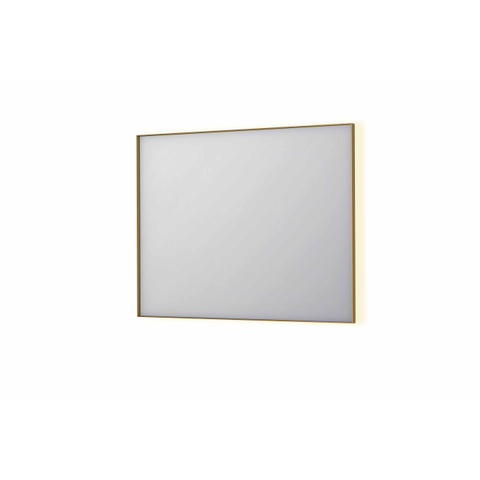 INK SP32 spiegel - 100x4x80cm rechthoek in stalen kader incl indir LED - verwarming - color changing - dimbaar en schakelaar - geborsteld mat goud