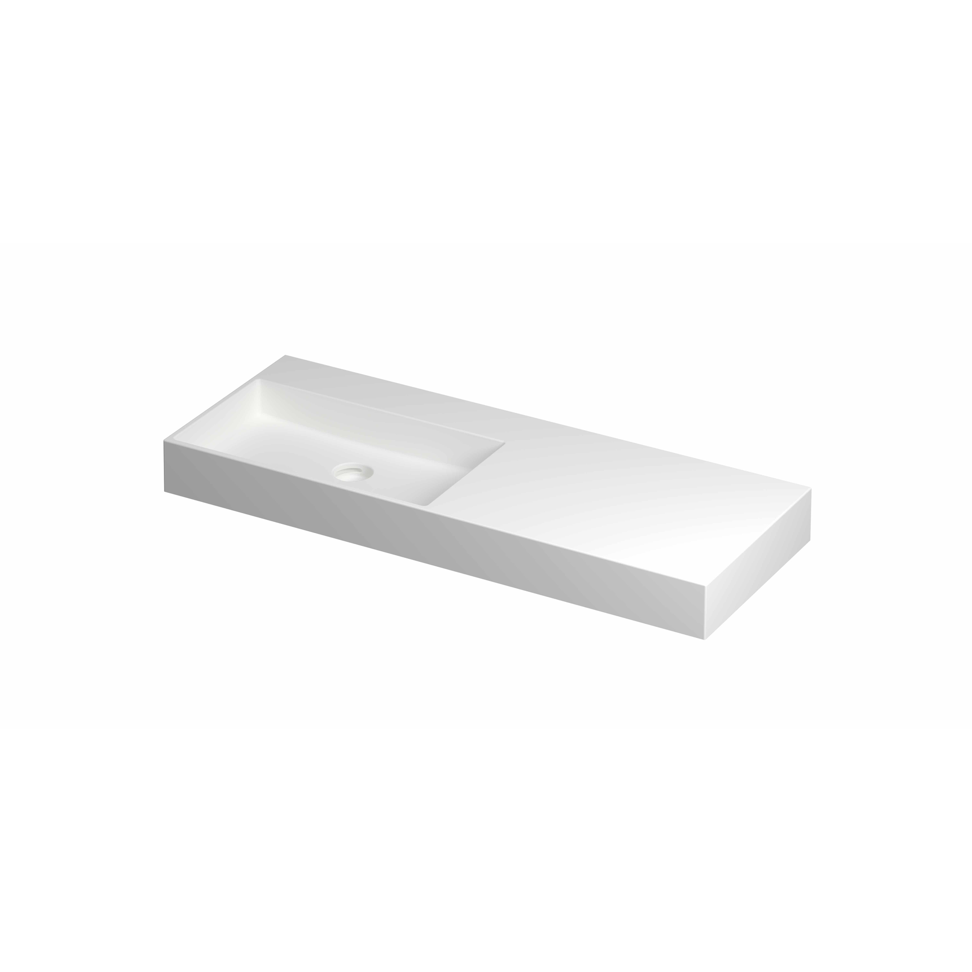 INK United wastafel - 120x45x11cm porselein links zonder kraangat incl. porseleinen click plug en verborgen overloop systeem - mat wit