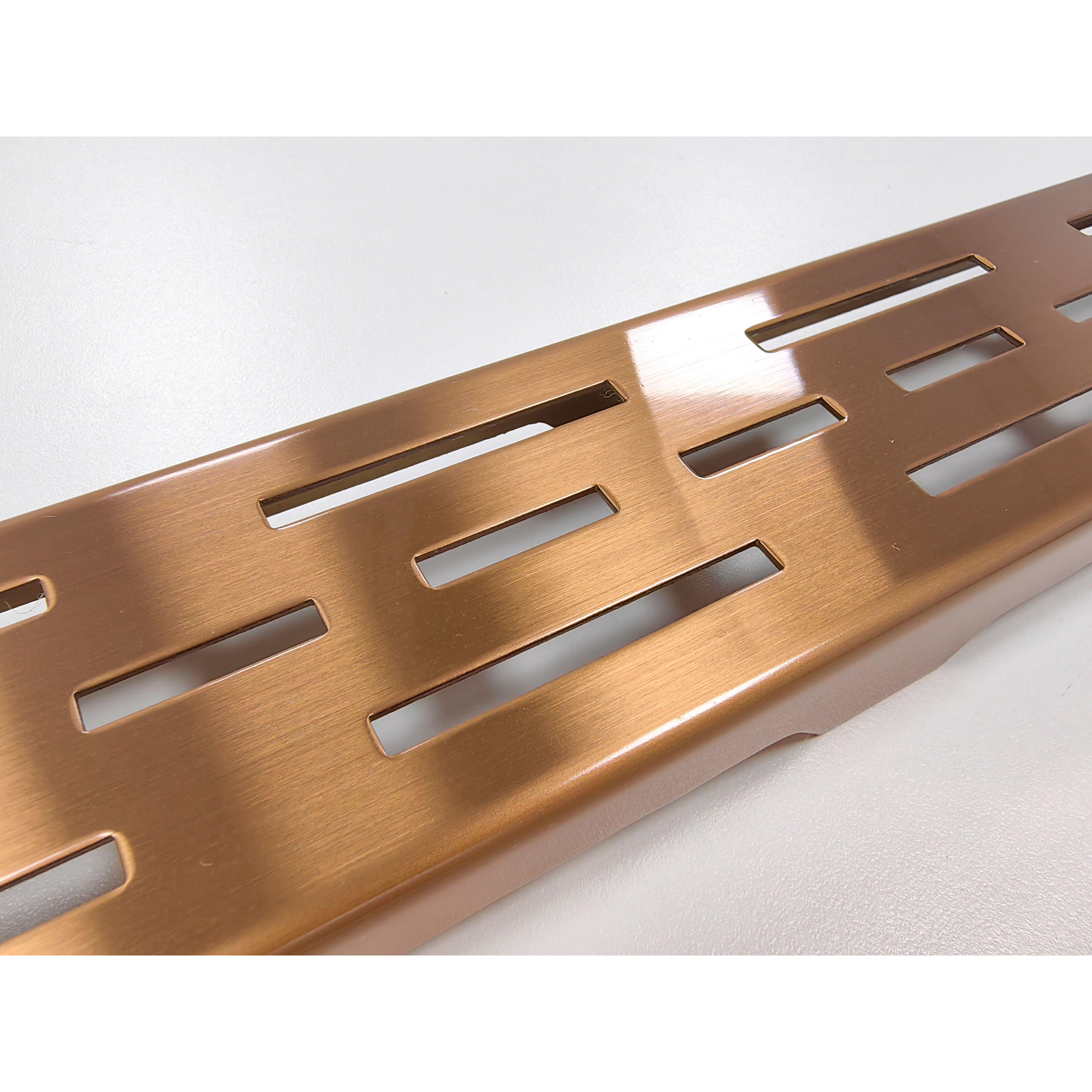 De Fortifura Galeria Douchegootrooster in geborsteld koper PVD voegt een vleugje elegantie en stijl toe aan elke badkamer. Met zijn prachtige afwerking en duurzame materialen is dit rooster niet alleen functioneel, maar ook een esthetische toevoeging aan je douche. Met een lengte van 50 cm past dit rooster perfect in moderne en klassieke badkamerontwerpen. Laat je badkamer schitteren met dit hoogwaardige douchegootrooster.