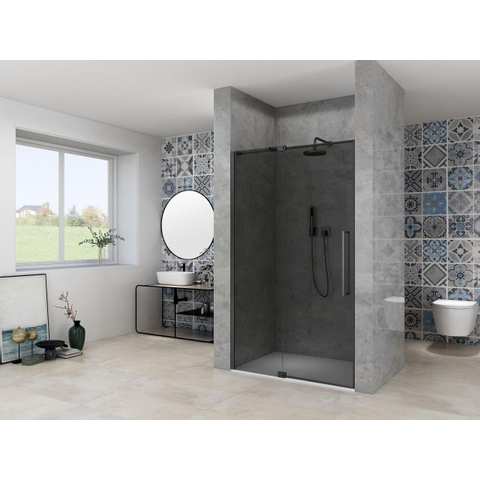 Deze nis draaideur is ontworpen met oog voor stijl en elegantie. Het 8 mm dikke grijs rookglas geeft de douchedeur een luxe uitstraling en zorgt voor een moderne look in je badkamer. Het zwarte muurprofiel voegt een vleugje elegantie toe en de greep en stabilisatiestang bieden niet alleen functionaliteit, maar ook een esthetisch element dat de algehele uitstraling van de deur versterkt.