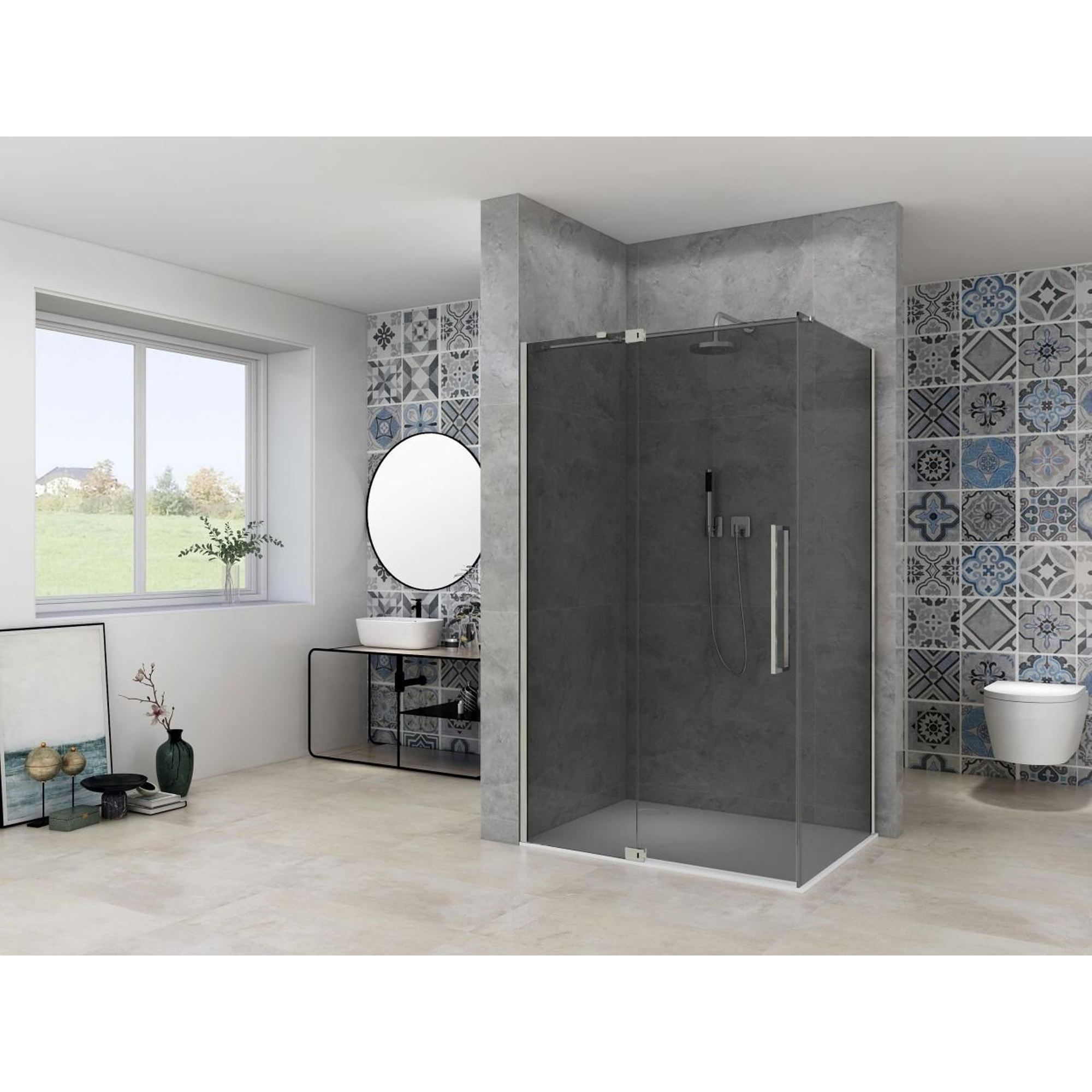 Van Rijn Products ST08 Nis Draaideur 2 delig 1150-1250 x 2000mm 8 mm Grijs rookglas incl. Glasbehandeling, RVS muurprofiel, Greep en Stabilisatiestang