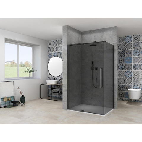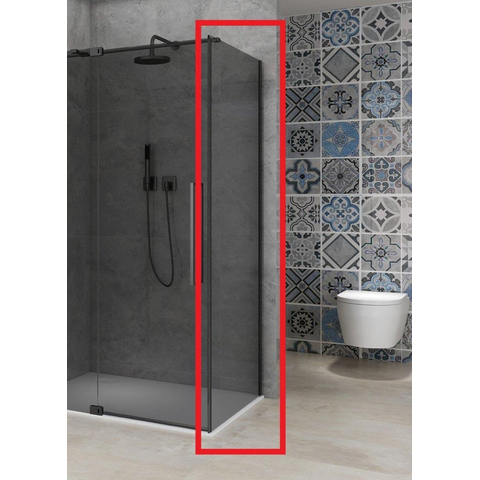 Van Rijn Products ST08 Vaste wand 1185-1205 x 2000mm 8 mm Grijs rookglas incl. Glasbehandeling Zwart muurprofiel