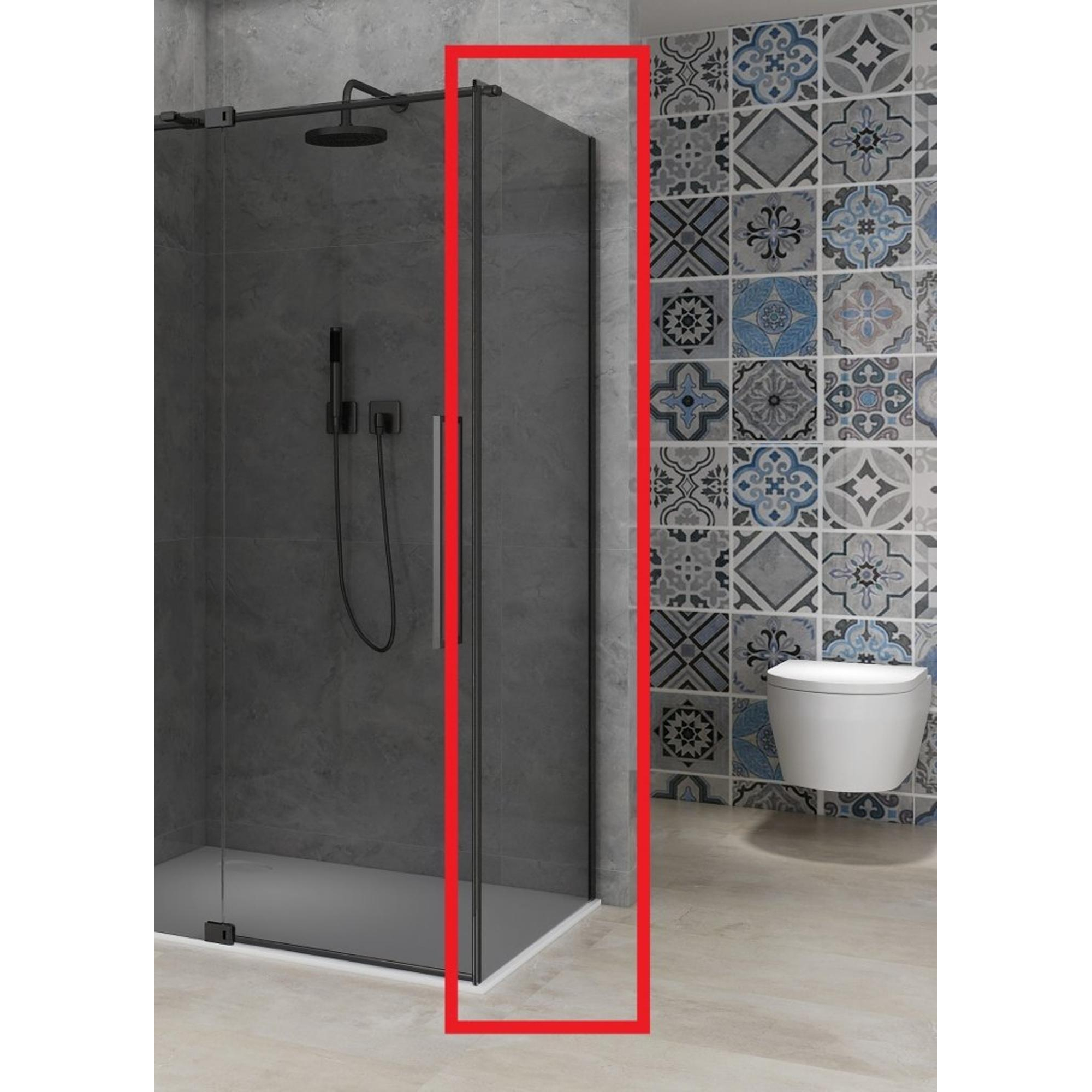 Van Rijn Products ST08 Vaste wand 985-1005 x 2000mm 8 mm Grijs rookglas incl. Glasbehandeling Zwart muurprofiel