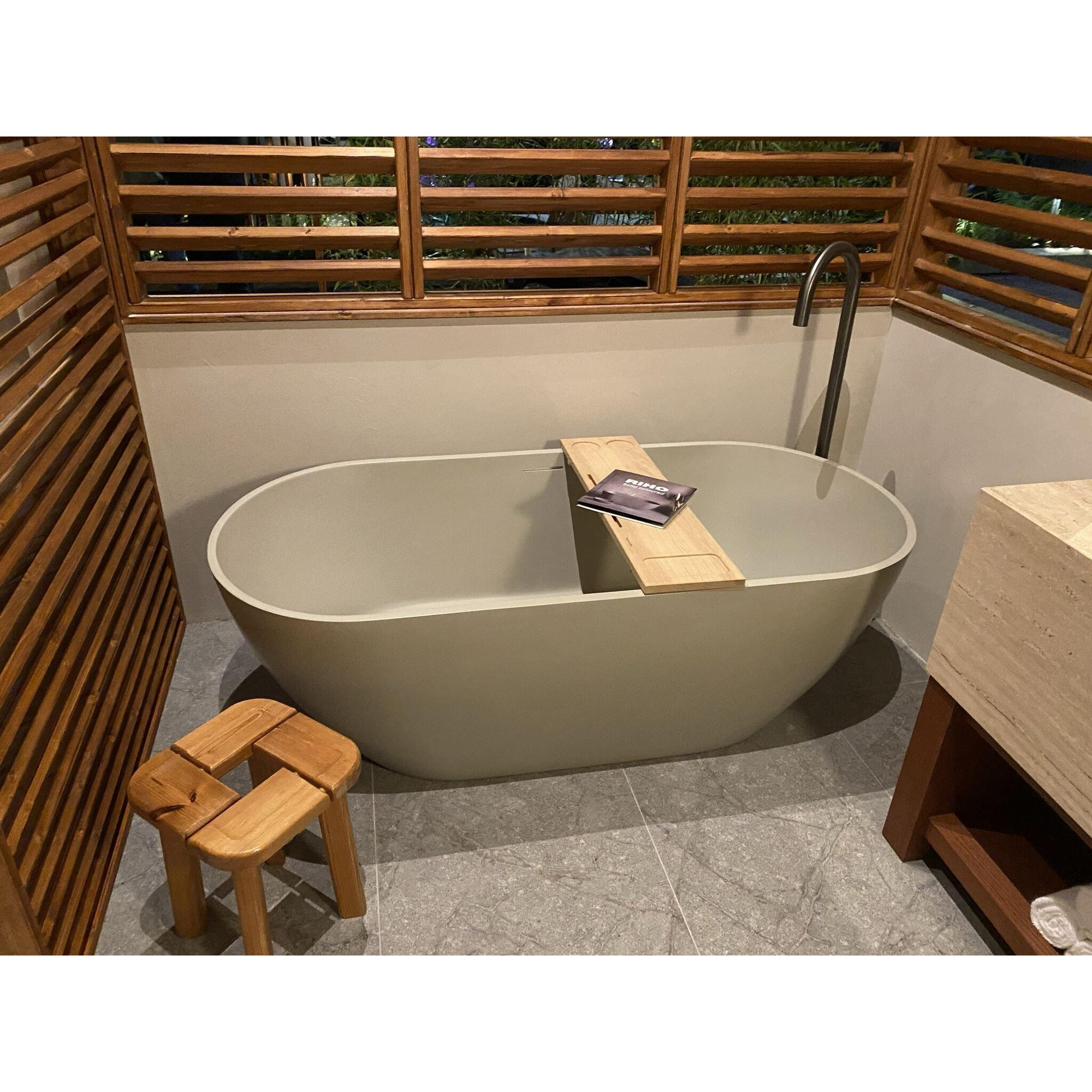 Dit prachtige Riho Bilbao vrijstaand bad in mat Pebble Grey (Beige) is een ware blikvanger in elke badkamer. Met zijn elegante en moderne uitstraling voegt dit bad een vleugje luxe toe aan je badkamerinterieur. Het vrijstaande design en de solide constructie van solid surface materiaal maken dit bad niet alleen stijlvol, maar ook duurzaam en gemakkelijk te onderhouden. Met een afmeting van 170x80cm biedt dit bad voldoende ruimte om heerlijk te ontspannen na een lange dag.