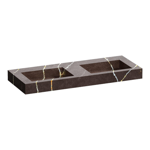 BRAUER Coral wastafel - 120x46x10cm - 2 wasbakken - 0 kraangaten - composiet - marmerlook - Copper Brown