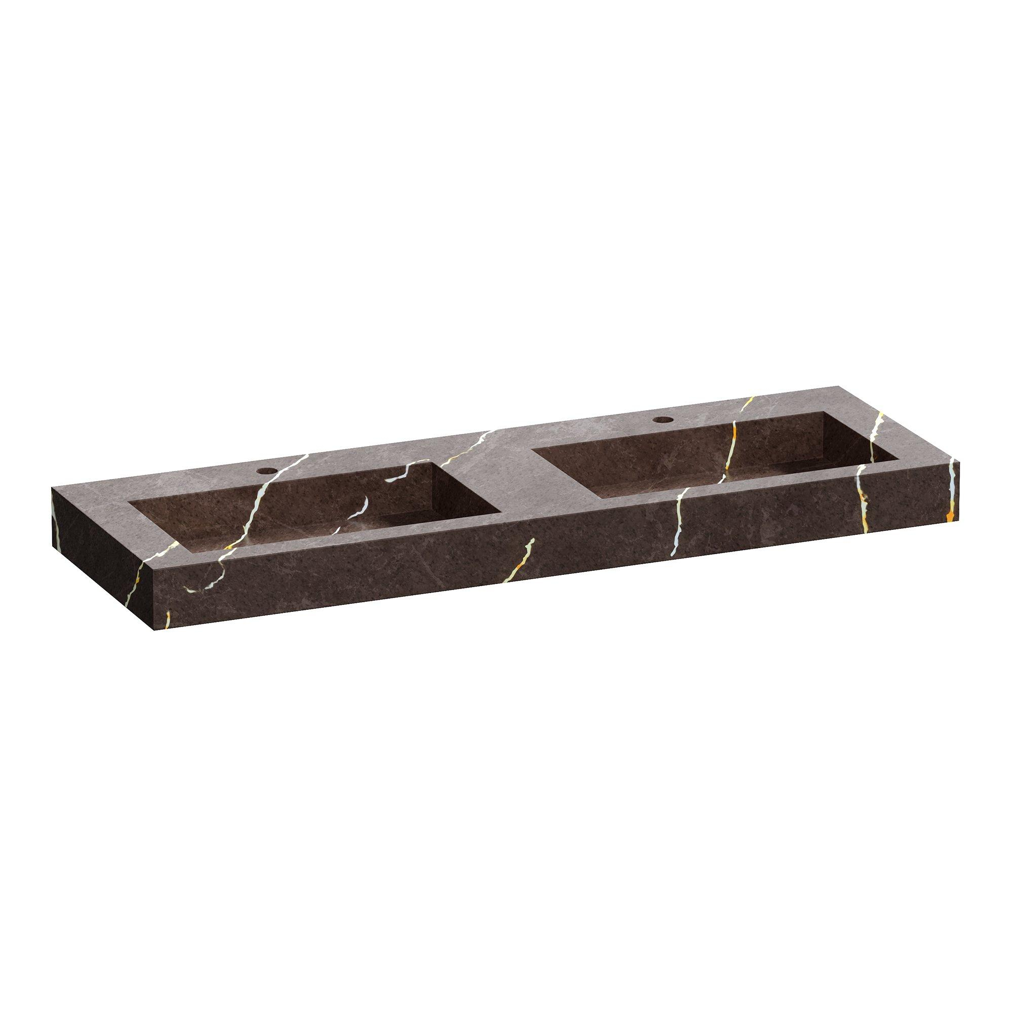 BRAUER Coral wastafel - 140x46x10cm - 2 wasbakken - 2 kraangaten - composiet - marmerlook - Copper Brown