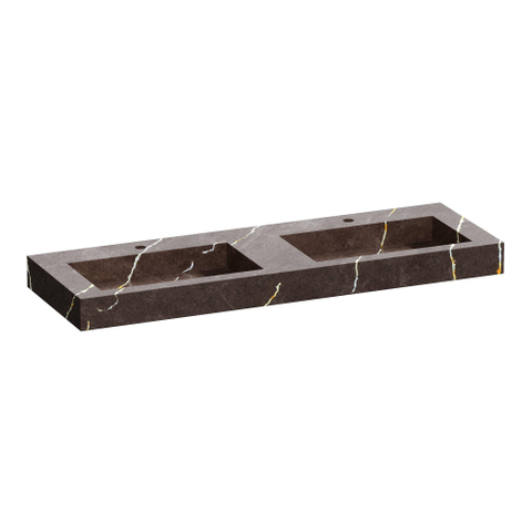 BRAUER Artificial Marble Meubelwastafel - 140x46x10 - Zonder overloop - 2 wasbakken - 2 kraangaten - composiet - Copper Brown